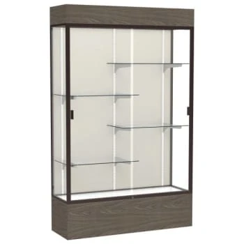 - Illuminate and customize your display with a lighted cornice and adjustable shelving.