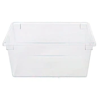 - Rubbermaid FG332800CLR 16.625 Gallon food storage box helps you keep your food fresh and organized. With an extremely durable polycarbonate construction, this food storage and transportation solution can hold anything from poultry and fish to bulk produce and more. It features rounded corners for added comfort and safety during use and thanks to the ridges on the bottom of the box, this unit can securely stack with other boxes that use the compatible lid (sold separately). It is clear, stain-resistant construction allows for quick product identification which, when combined with the integrated date control panel, makes inventory control even easier than ever.